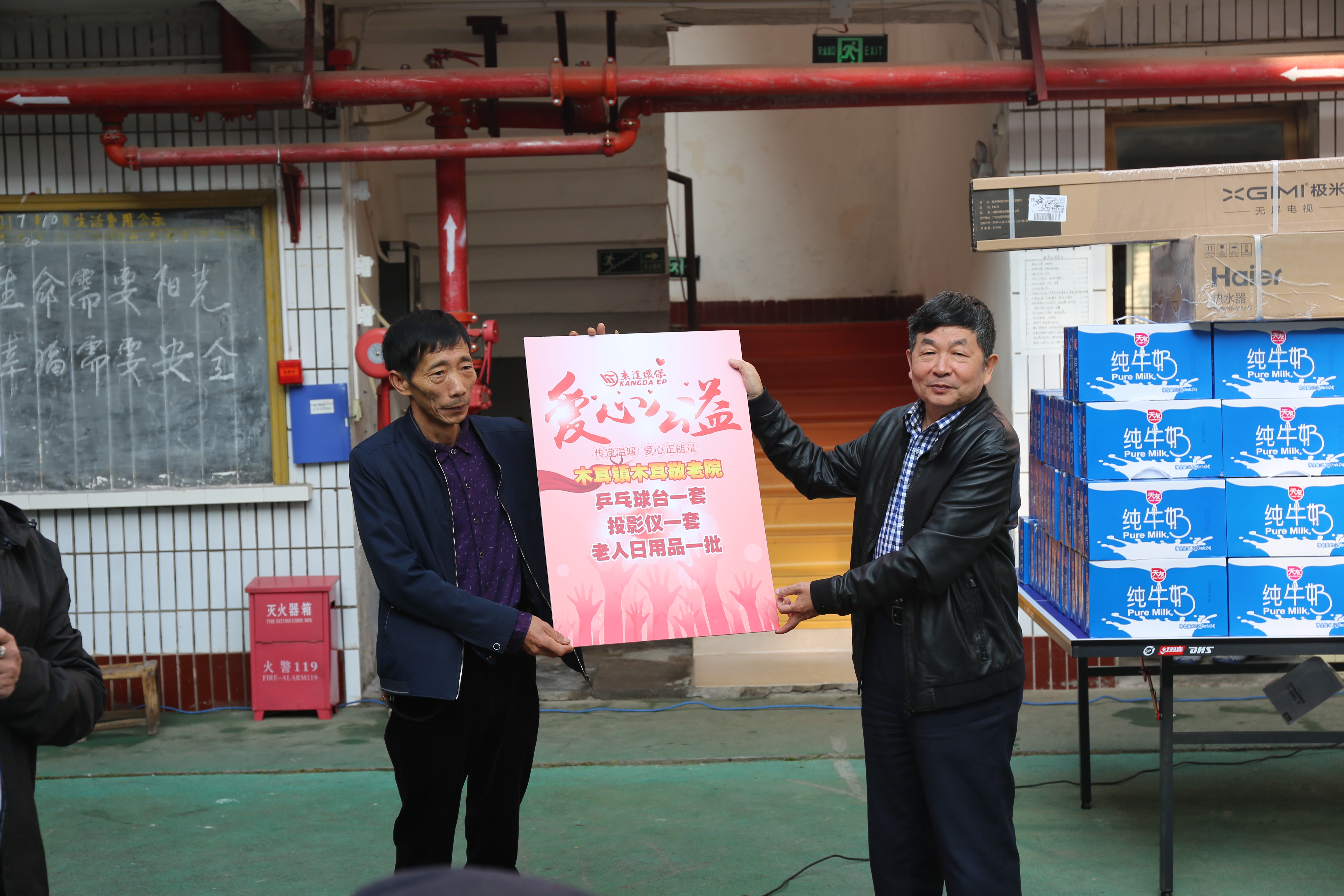本次慰問活動由木耳敬老院唐院長主持,張總裁代表集團公司向敬老院捐贈了投影設備、乒乓球台、熱水器等文娛設備和生活電器,並向每位老人送去了牛奶、抽紙等慰問品。