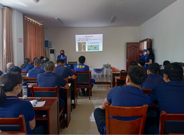 新鄭藍天救援隊秦教官就防溺水安全向大家重點強調“安全無小事,生命價(jia) 更高”,希望每個(ge) 員工認真對待,防微杜漸,把安全當作工作和生活中的頭等大事。接著又為(wei) 我們(men) 講解防溺水的相關(guan) 知識,並現場演示如何正確穿戴救生衣以及溺水施救的相關(guan) 要領。室內(nei) 培訓結束後,大家列隊趕往防溺水應急演練模擬現場——廠區二沉池。救援隊教官們(men) 現場講解並演練了溺水後的安全施救流程:有效打撈、報警、現場搶救及後續現場整理等等。